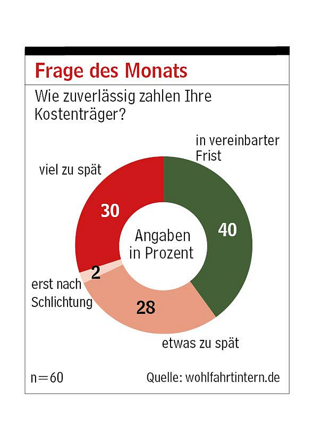 Die Mehrheit in der Sozial- und Gesundheitswirtschaft übt Kritik am Zahlungsgebaren von Kostenträgern. 60 Prozent der Befragten geben an, dass ihre Kostenträger nicht zuverlässig zahlen. Das hat die Wohlfahrt Intern Umfrage zur Frage des Monats ergeben.