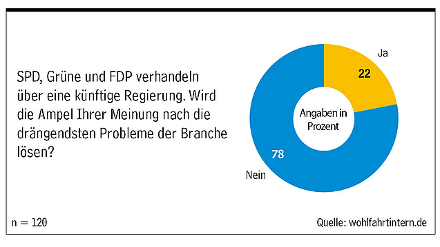 Über drei Viertel der Branche glaubt nicht daran, dass eine Regierung aus SPD, Grünen und FDP die drängendsten Probleme lösen kann. 78 Prozent der befragten sind dieser Meinung. 22 Prozent glauben dagegen, dass die Ampel-Koalition Lösungen für die drängendsten Fragen hat.