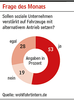 Im Mai fragte Wohlfahrt Intern die Besucher ihrer Homepage, ob soziale Unternehmen stärker auf Fahrzeuge mit alternativem Antrieb setzen sollen. Nur wenige bevorzugen die Fortbewegung mit klassichem Antrieb.