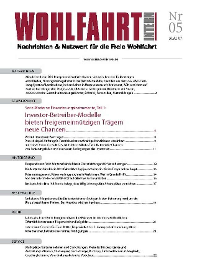 | 6 | Serie Moderne Finanzierungsinstrumente, Teil 1: Investor-Betreiber-Modelle bieten freigemeinnützigen Trägern neue Chancen |