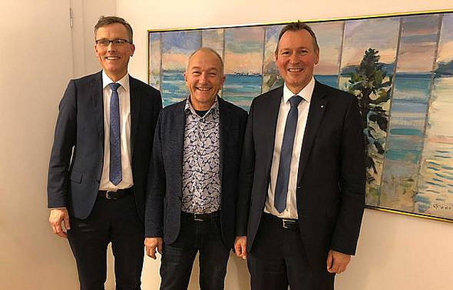 Stiftungsvorstände Markus Nachbaur (links) und Berthold Broll (rechts) mit SMO-Geschäftsführer Peter Girardi (mitte) © Stiftung Liebenau