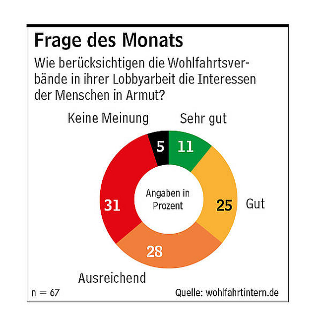 04.06.2019, 17:45 Uhr InteressenvertretungBranche zweifelt an Lobbyarbeit der VerbändeWie berücksichtigen die Wohlfahrtsverbände in ihrer Lobbyarbeit die Interessen von Menschen in Armut? Das hatten wir Sie im vergangenen Monat gefragt. Hier ist die Antwort.Jetzt gesamten Artikel lesen.WI.Abo bestellen oder anmelden!