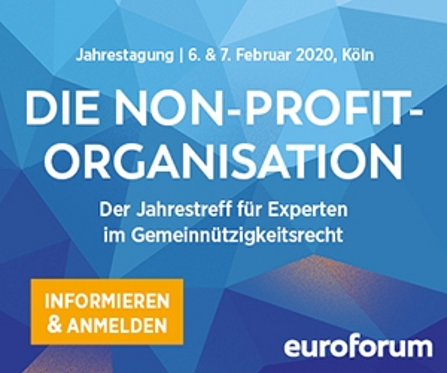 Vom 5. bis 7. Februar 2020 findet die Euroforum-Jahrestagung ,Die Non-Profit-Organisation‘ in Köln statt. Die Veranstaltung bringt Praktiker aus dem freigemeinnützigen Sektor steuerrechtlich auf den neuesten Stand.